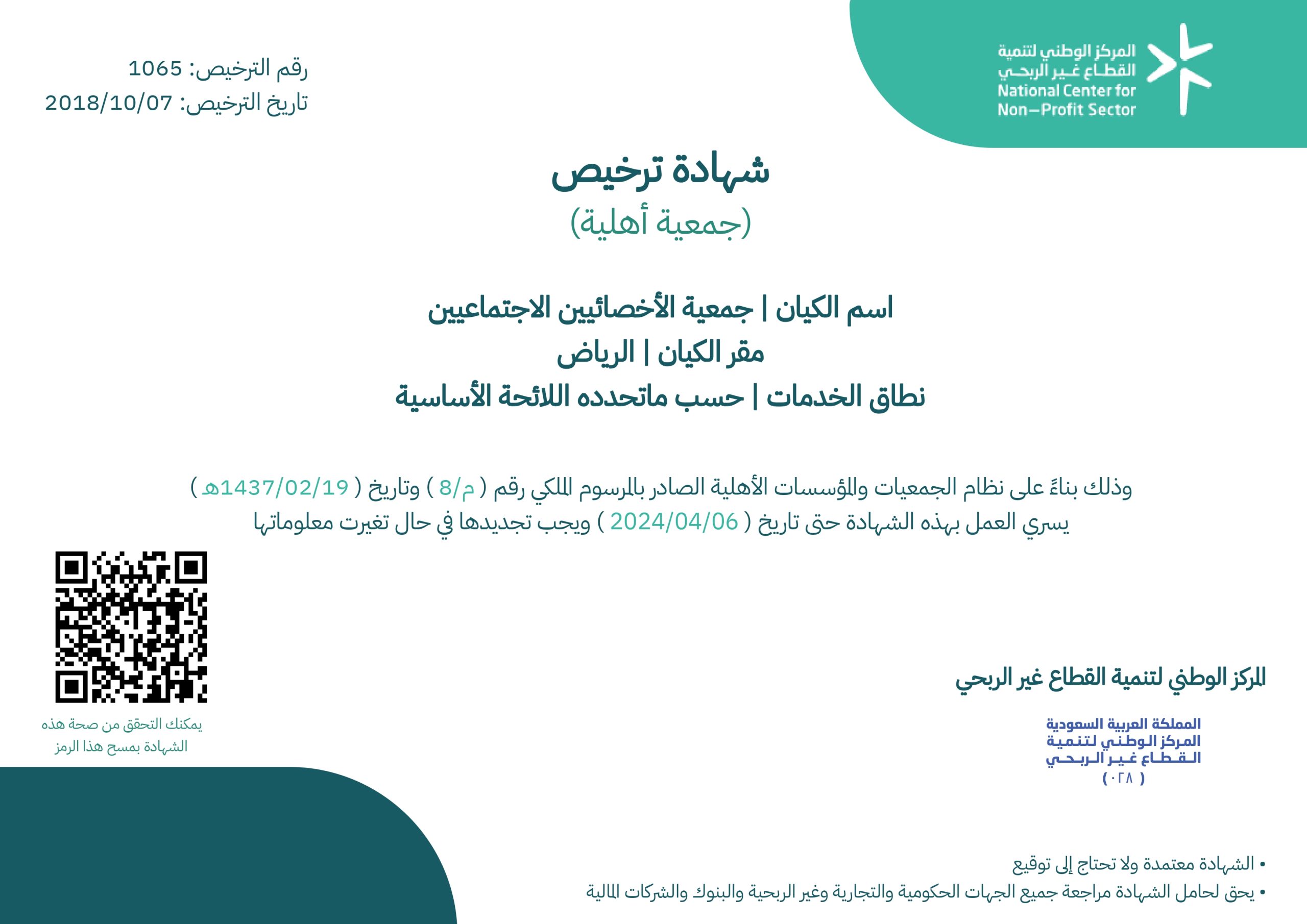- المساهمة في رفع مستوى الوعي بدور الأخصائيين الاجتماعيين.